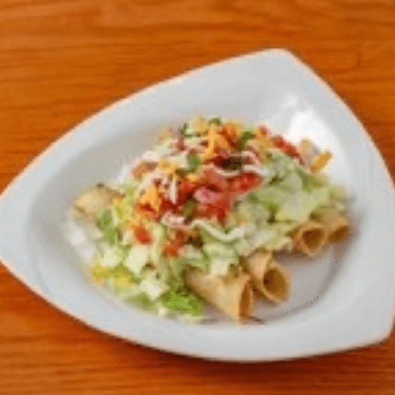 Fried taquitos, lettuce, pico de gallo, cheese, sour cream