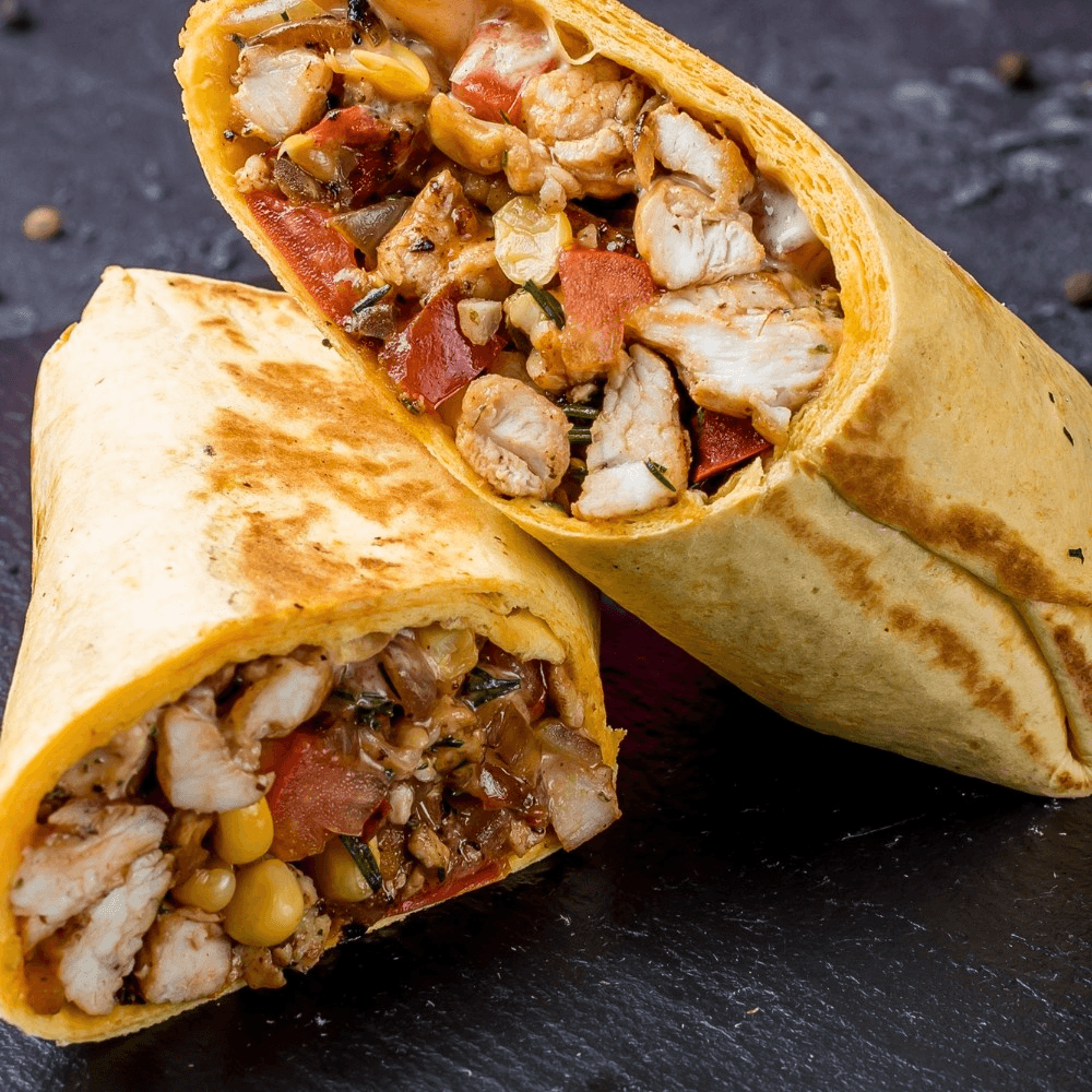 Choice of meat, rice, beans, lettuce, diced tomatoes, cream, Cheddar jack, guacamole
