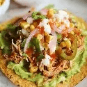 Crispy tortilla, topped with chicken or beef, salsa verde, queso and tomatoes