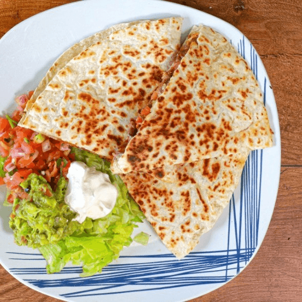 Queso Oaxaca, refried beans, chorizo, squash, pico de gallo, guacamole